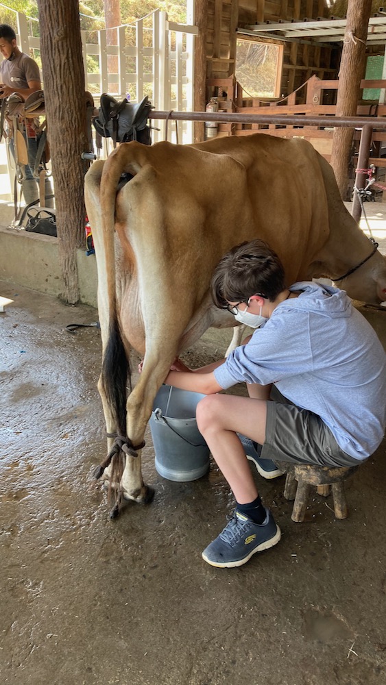 Finca Madre Tierra was the first carbon-neutral farm in Costa Rica and we were really excited to visit and learn more about it. We met at reception at 2pm to travel with Oscar, one of the people who run the farm, to travel to the farm, which was about 25 minutes away from the hotel. When we arrived, we were greeted by the farm dogs and the sounds of the animals who after washing our hands we went inside the barn to meet.
