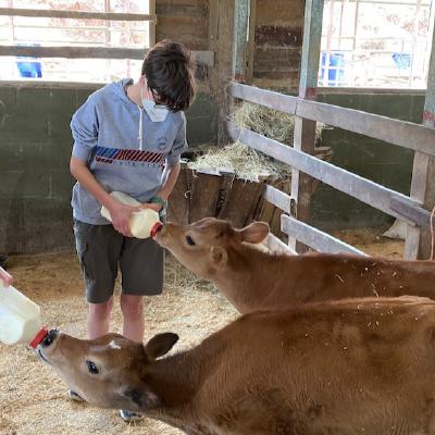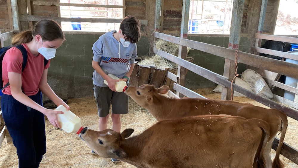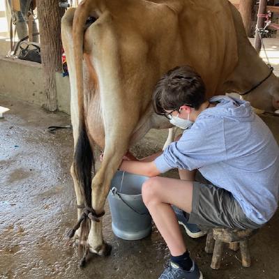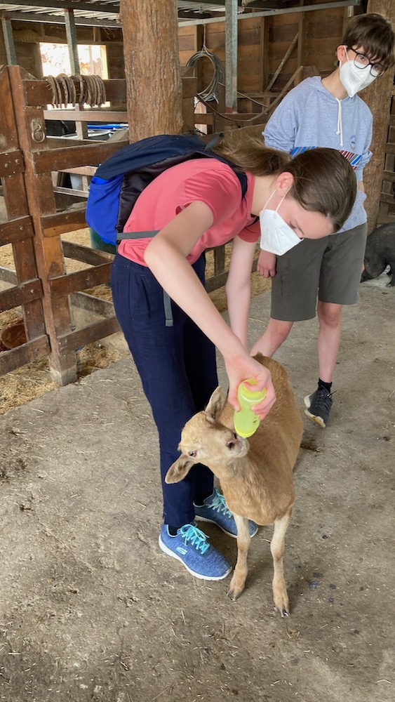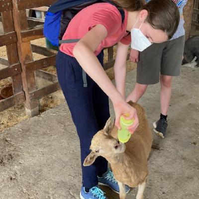 First we got to feed the donkeys and then Laura and Abi had a go at milking the cow. Some of the milk was then put into bottles for the young animals and Abi and Jessica fed it to the calves and lambs. The milk from the cows is also used in making cheese for the hotel.